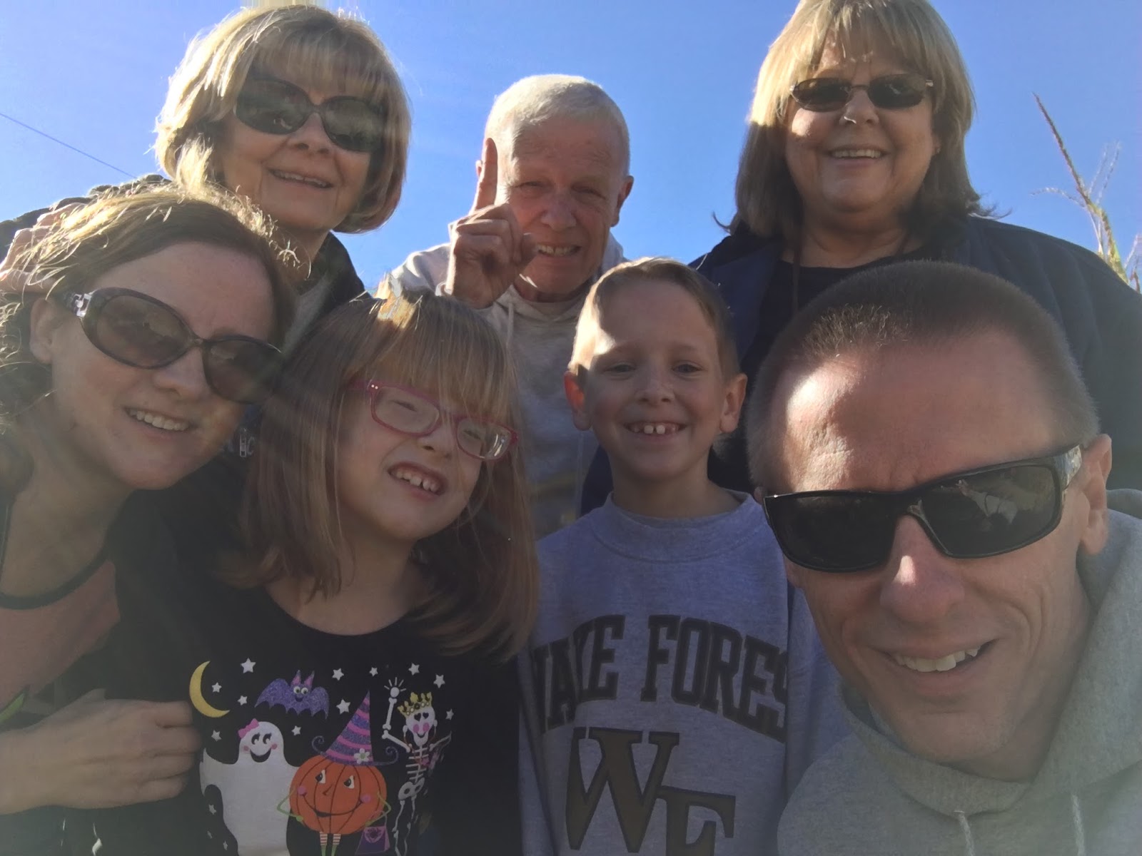 Saturday afternoon our family, my mom, Drew's mom and Drew's dad all met up at a local corn maze. It was another new one for us and we all really enjoyed it. We do some sort of corn maze every year and they are all so different. This one you literally wandered around the maze looking for 6 different boxes. You answered a question and then scratched a part off a card to reveal your points. The one with the most points at the end wins. There were no directions or hints or clues if you were going the right way. We eventually found all 6 boxes and I don't quite remember but I think I had the most points. ;) They had many other activities the kids were able to do, a big jumping pillow, a cow train, a tree house jungle gym and they had the most delicious apple cider doughnuts. They were so good! It was a beautiful fall afternoon that we all enjoyed!